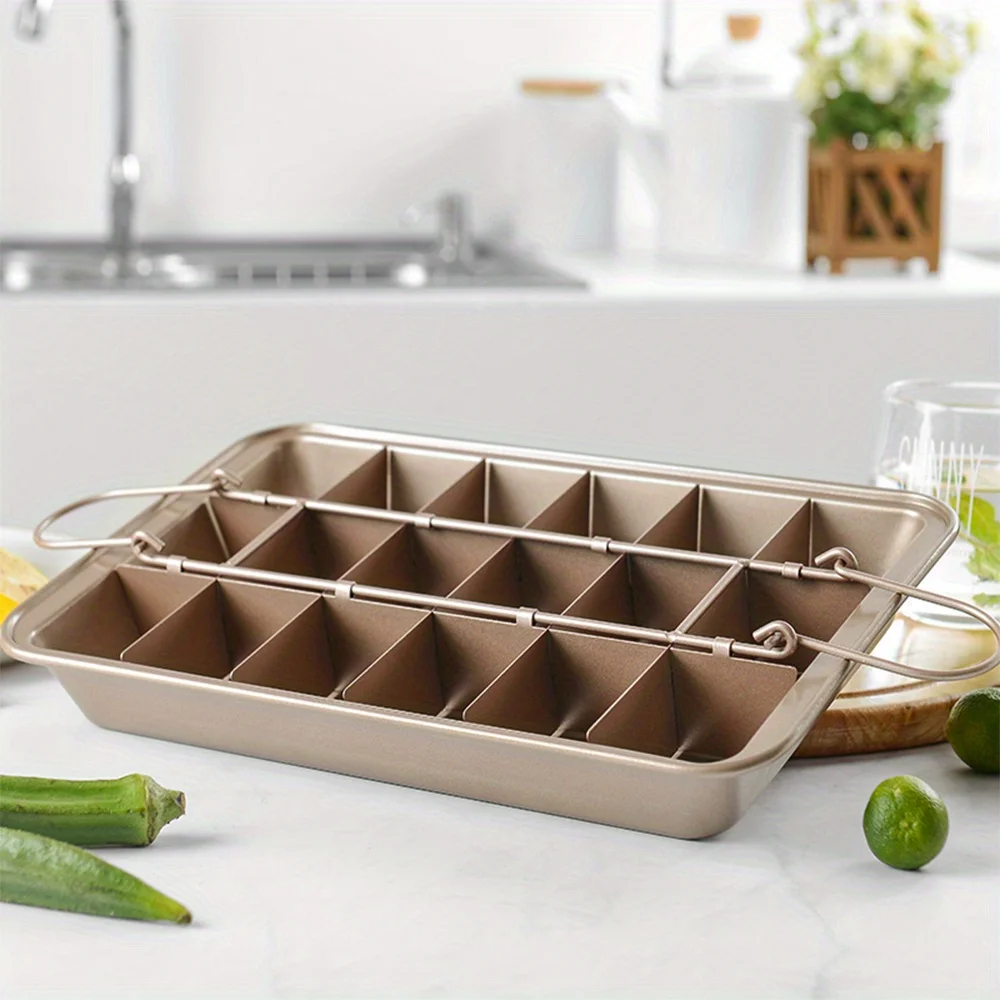 This brownie cake pan with dividers is perfect for baking evenly portioned treats with ease. The 12.2” x 7.7” size offers ample space for brownies, blondies, and cakes. Made from durable stainless steel, it provides excellent heat distribution for consistent baking results. The removable divider design allows you to create perfectly shaped squares without cutting. You can also remove the dividers to use it as a traditional loaf or cake pan. The non-stick surface helps ensure easy release and simple cleanup. It is ideal for brownies, muffins, small cakes, and other delicious desserts. The sturdy construction resists warping and maintains its shape over time. Suitable for home bakers and professionals alike, it makes baking more convenient and efficient. Upgrade your bakeware collection with this versatile and practical brownie pan.